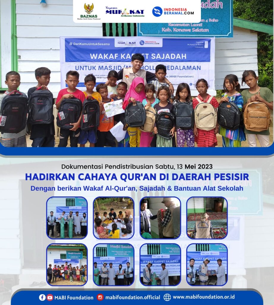 Bersama Relawan MABI Foundation kami melihat salah satu masjid dan memberikan sedikit bimbingan belajar untuk mereka yang tidak memiliki perlengkapan sekolah yang lengkap dan juga tidak adanya Al-Qur’an yang layak untuk mereka baca dan pelajari. Dan Alhamdulillah kami juga telah mendistribusikan amanah sahabat berupa Wakaf Al-Qur’an dan Bantuan Alat Sekolah kepada mereka.